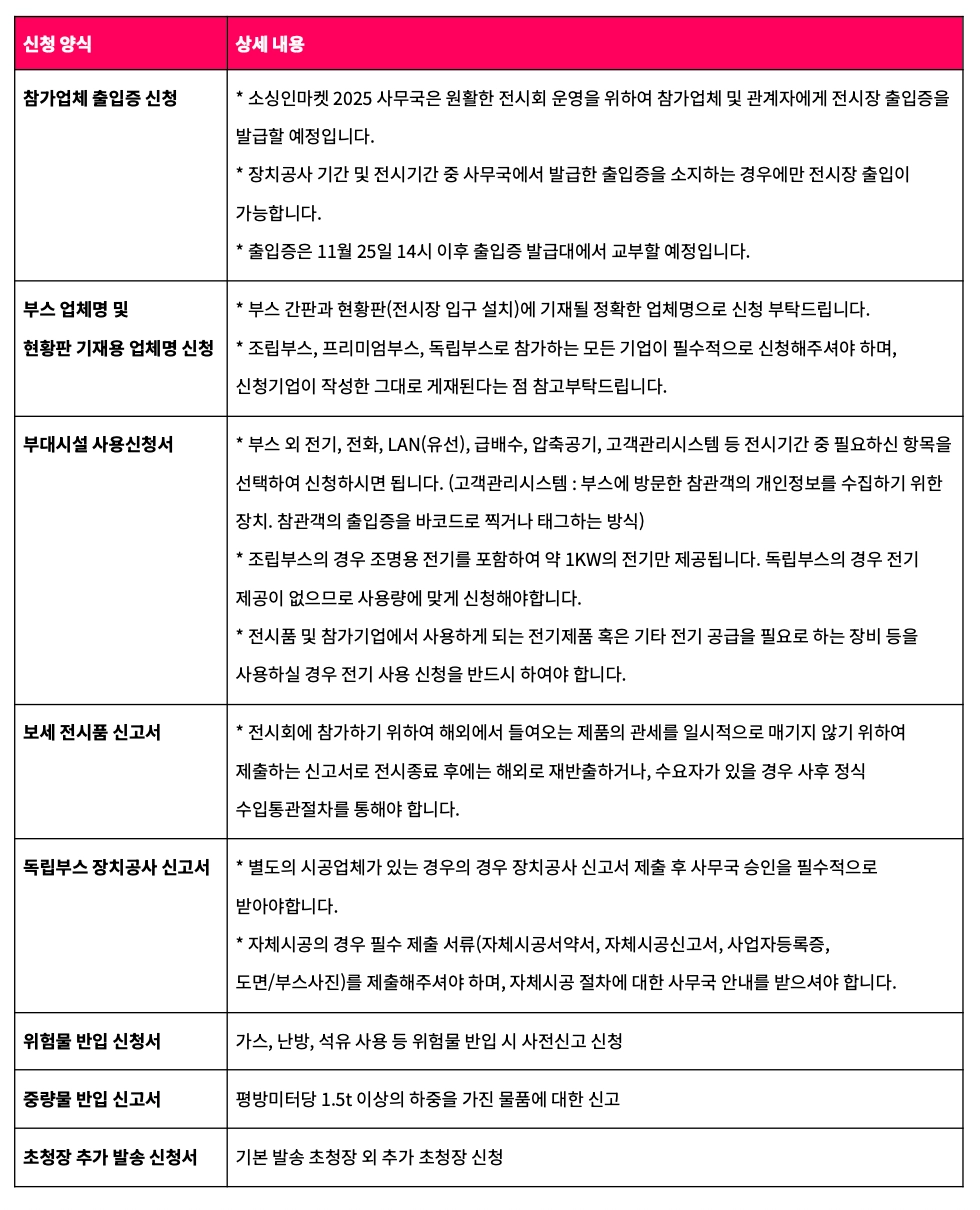 전시 참가 시 필수적으로 제출해야 하는 서류 양식과 설명을 참고하신 후,